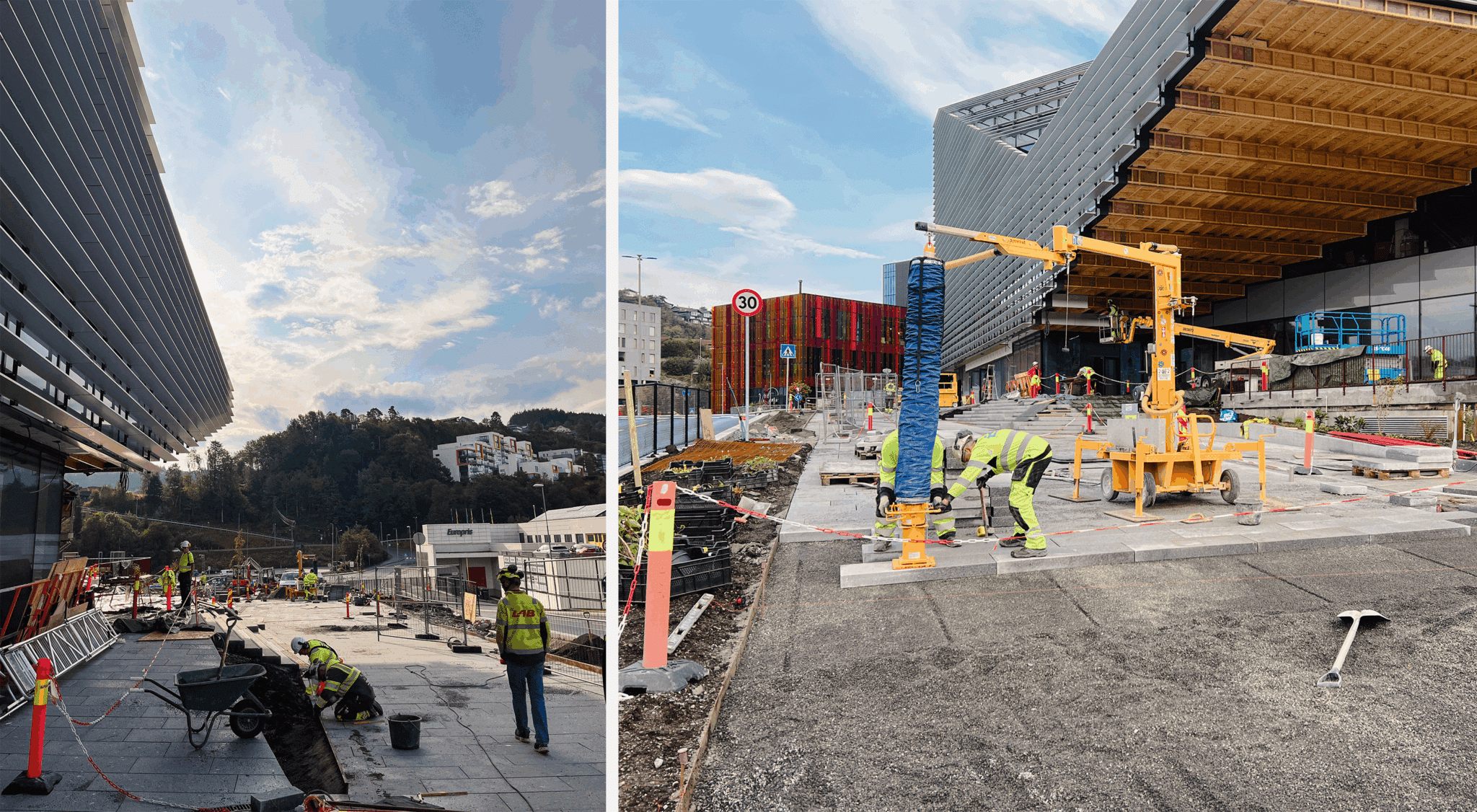 Like spennende hver gang å se prosjektet ta form i virkeligheten! Vi gleder oss til ferdigstillelse og til at uteområdet tas i bruk. Her kommer uteservering, romslige plantefelt og vannspeil. Dette blir et flott tilskudd til uteområdene på Lagunen.
