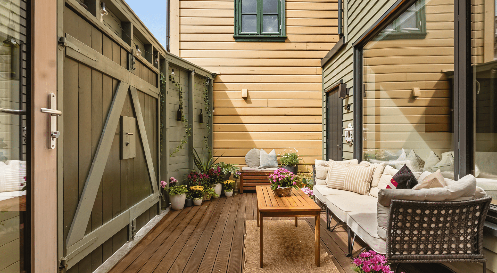 Fellesrom som kjøkken, stue, spiserom og trapp, samt himlinger i toppetasjen er kledd i ask. Dette gir godt inneklima og atmosfære i boligen. Detaljer rundt vinduer, lister og overganger er utført med stor presisjon. Spesialbygd trapp og skreddersydde løsninger gir en høy kvalitet til boligen, og god fleksibilitet for hverdagslivet.