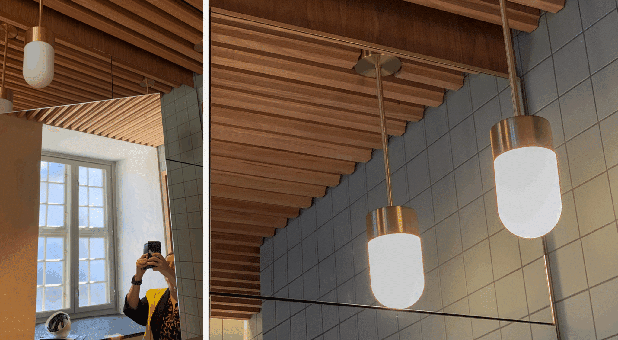 Særegne trekk ved Stallbygningen, som de tette bjelkelagene mellom murveggene, er bevart og videreført.