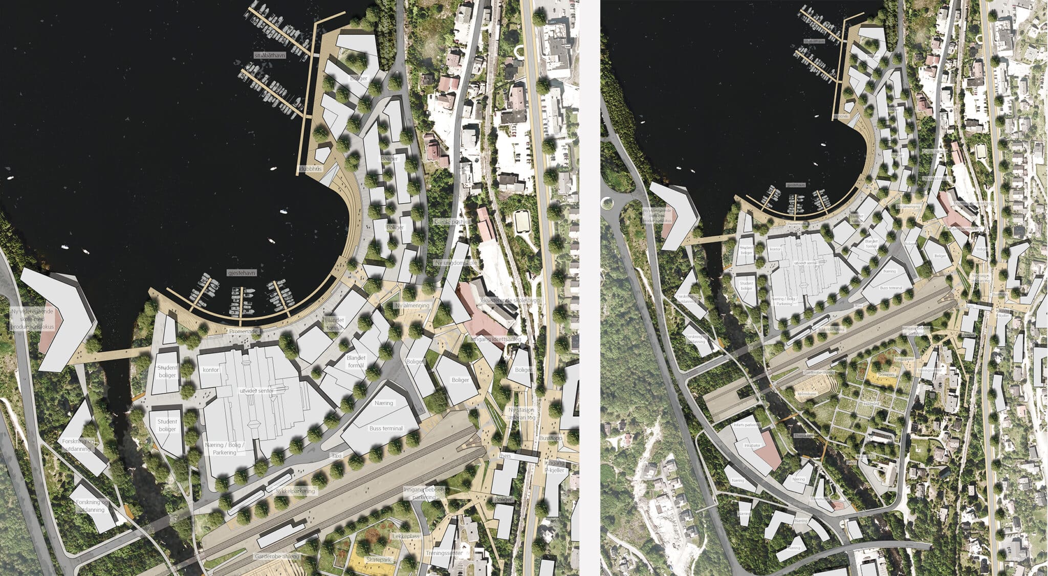 Det leverte forslaget har et klart fokus på utviklingen av et levende sentrum rundt Arna stasjon, strukturert rundt tre nye byrom: sjøfronten, allmenningen og elveparken. Disse byrommene skal skape et sammenhengende og attraktivt miljø for både innbyggere og besøkende.