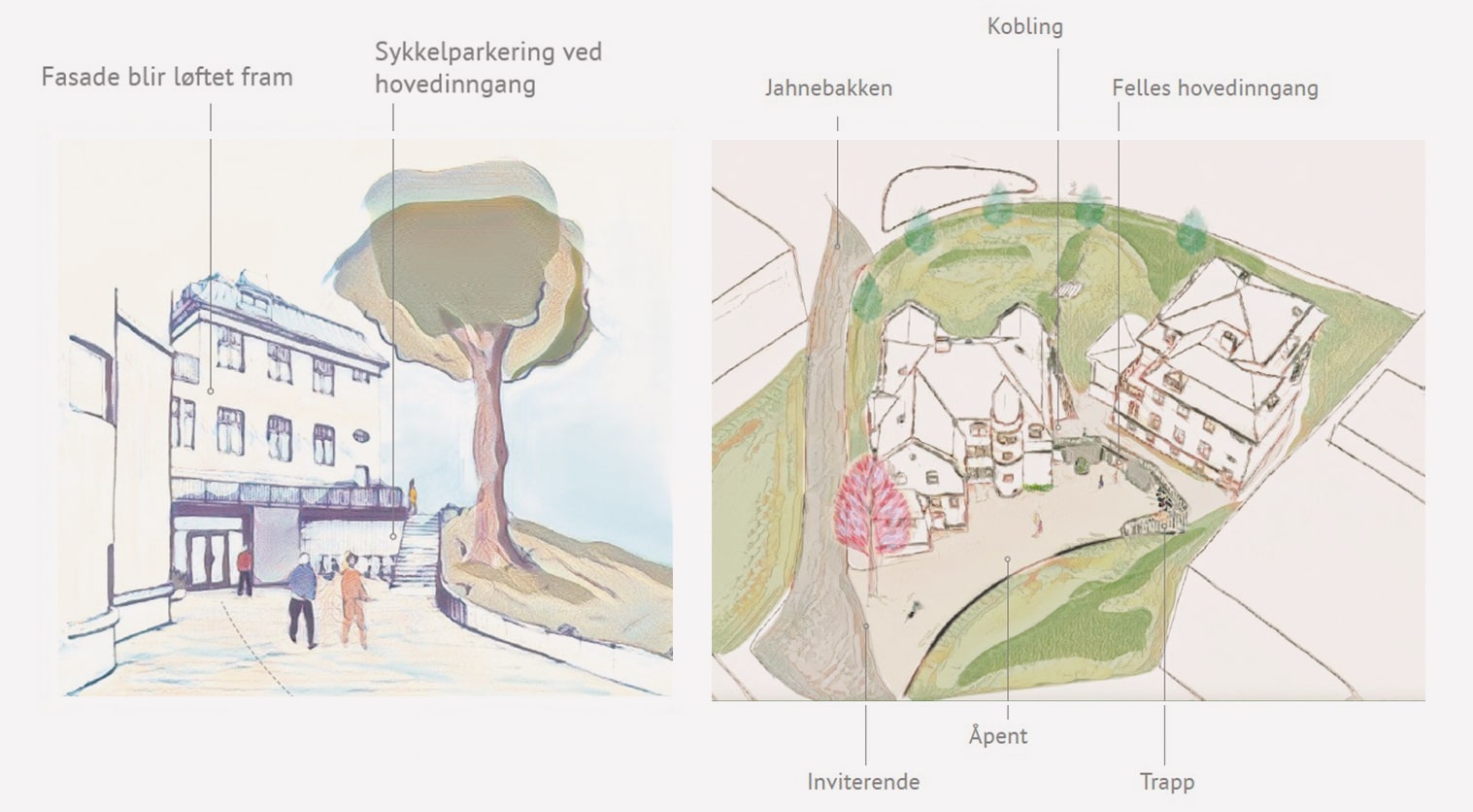 Grans Villa og Kroepelins hus i Jahnebakken 6 og 8 ble oppført tidlig på 1900-tallet, som fornemme murvillaer i jugend-/barokkstil. Gjennom årene har villaene endret bruk flere ganger, og de opprinnelige bygningsmessige kvalitetene har ikke alltid blitt hensyntatt. Både villaene og hageanlegget bar preg av omfattende vedlikeholdsetterslep da prosjektet startet opp.