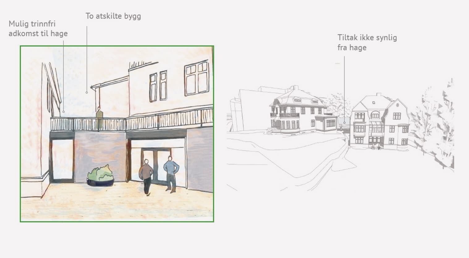 Prosjektet har som tydelig ambisjon at de arkitektoniske og kulturhistoriske verdiene i villaene tilbake- eller videreføres, og at nye kvaliteter tilføres på kulturmiljøets prinsipper.