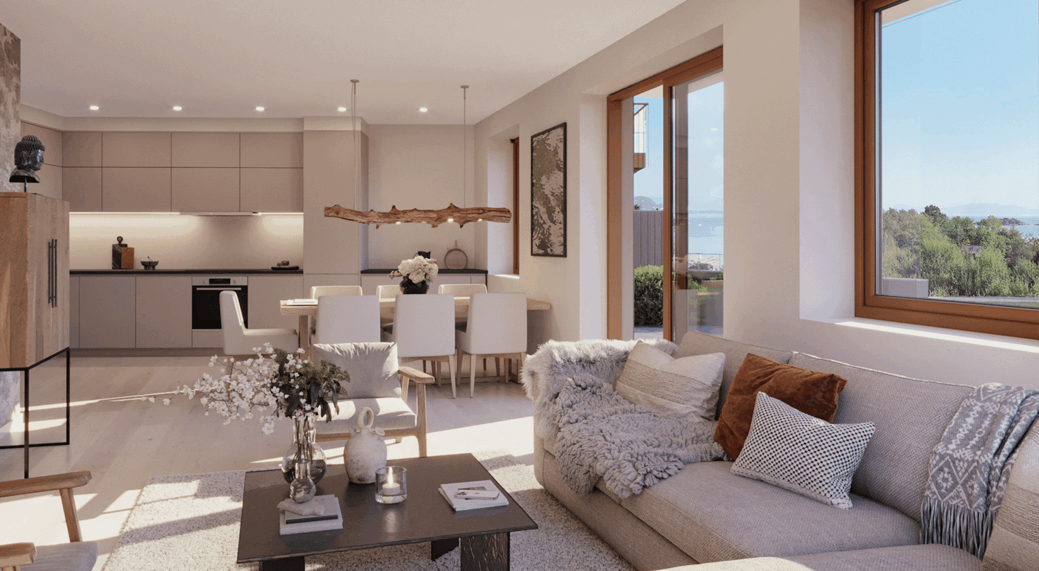 Boliger med fjordutsikt og grønne uterom i Tellevika