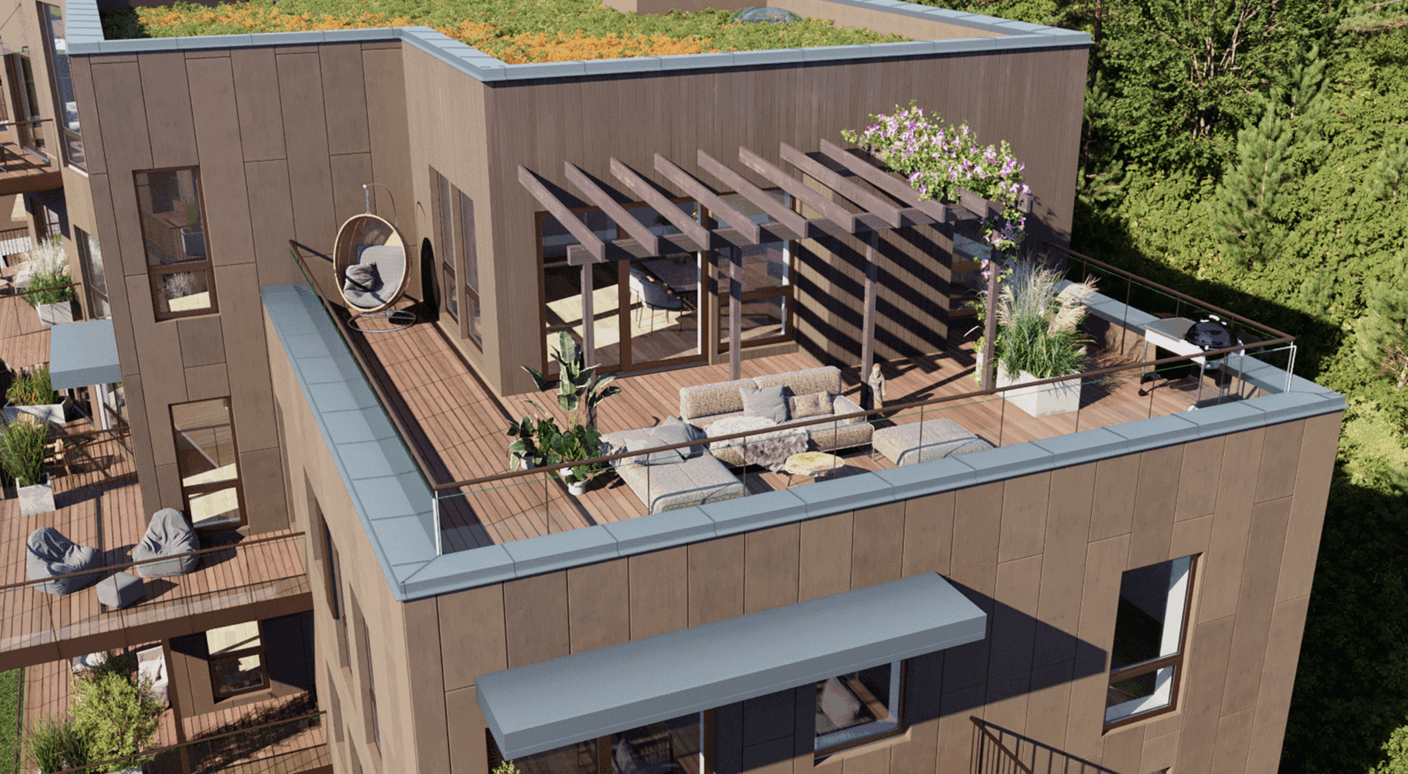 Boligområdet består av en nedre del med ni bygninger som huser ca. 90 boenheter, og en øvre del med ett bygg som huser 5 boenheter. Boligene varierer i størrelse og utforming, og er tilpasset beboere i alle livsfaser. Det er lagt vekt på utsikt og bokvalitet for alle. I tillegg til at hver enkelt har sitt private uteområde i form av balkong eller hage på bakkeplan, vil det være kort avstand til lekeplass og felles bilfrie uteområder for alle boligene. Det vil også være kort gangavstand til badestrand, barnehage og dagligvarebutikk.