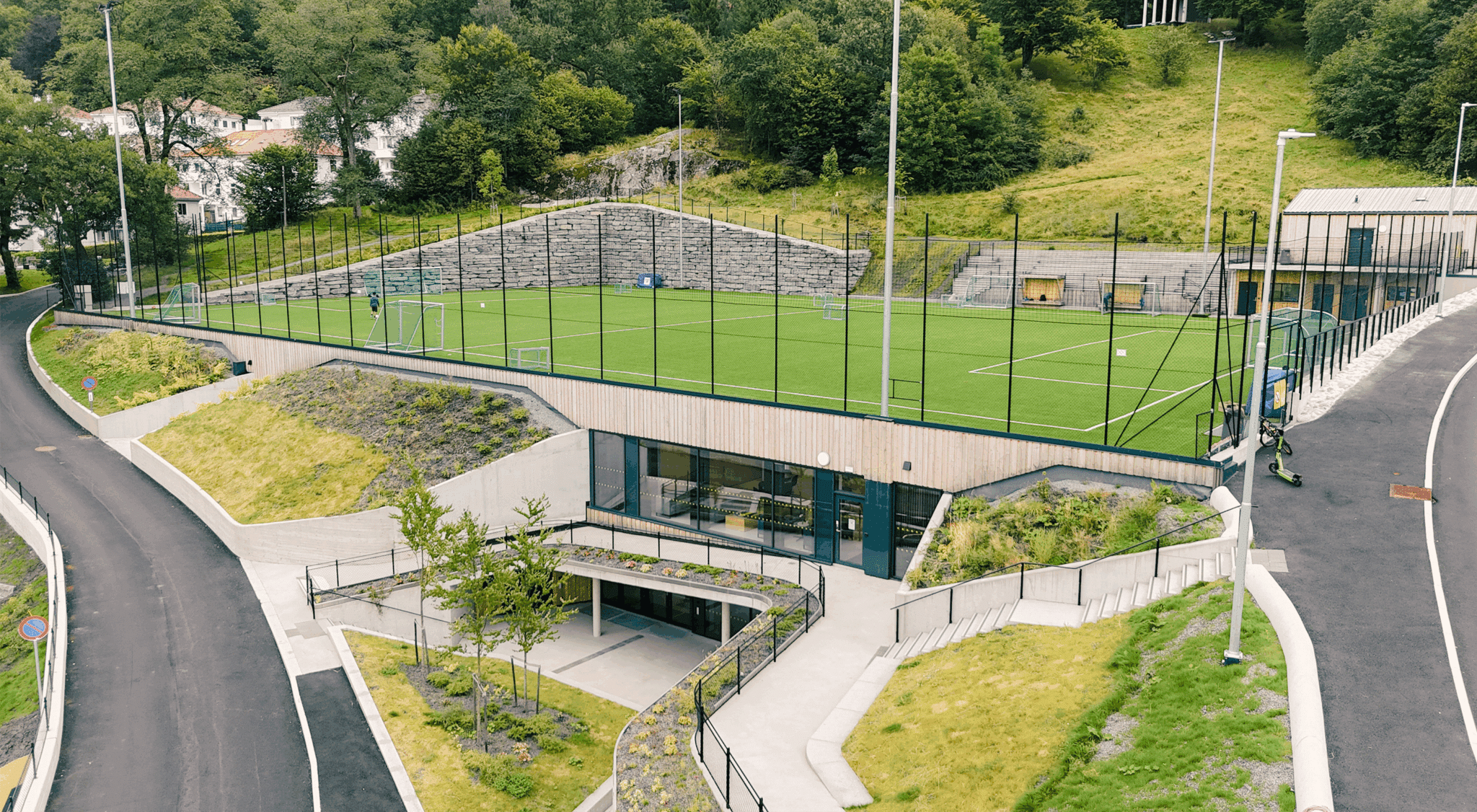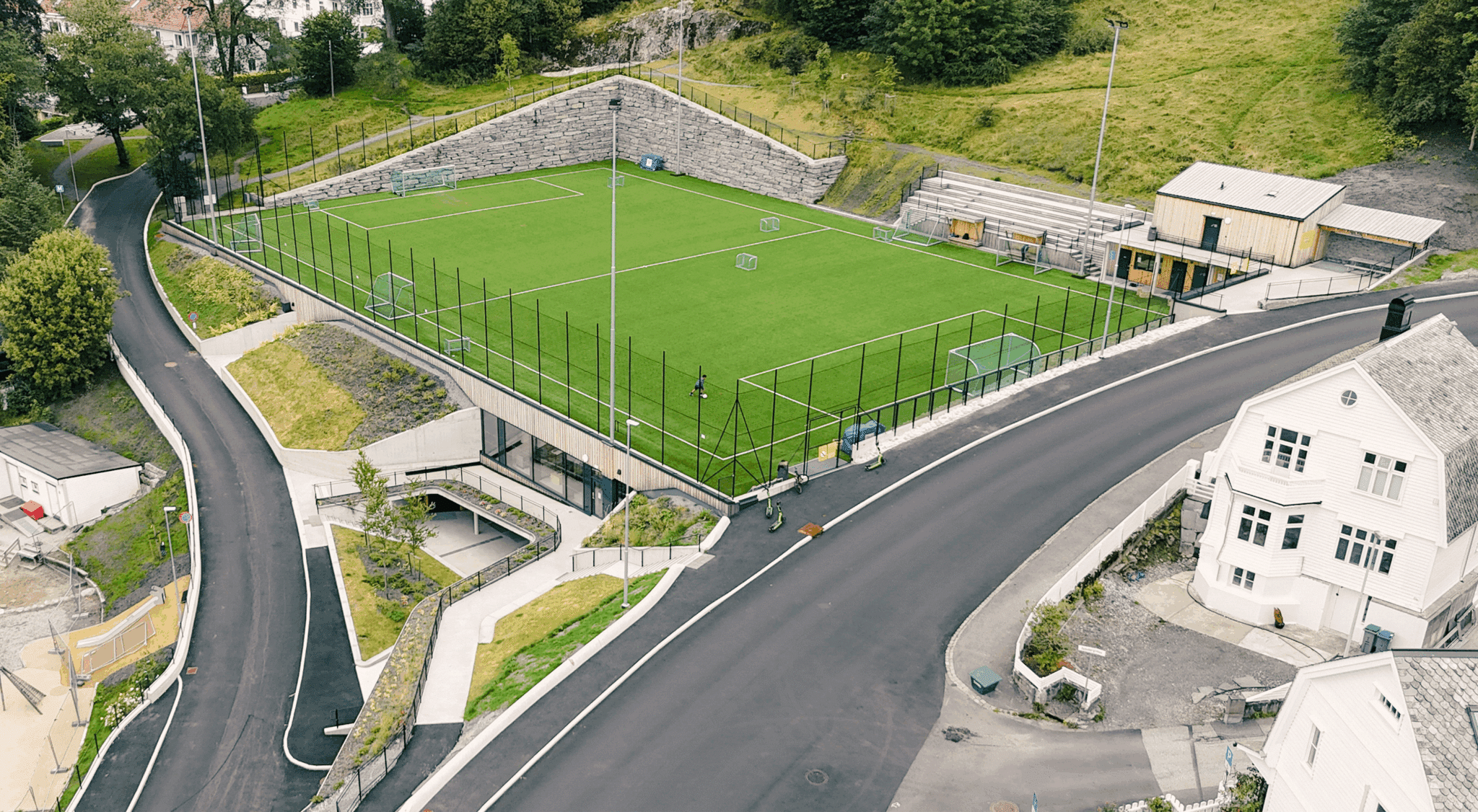 Mulebanen, en del av parkdraget mellom Fjellveien og Christinegården siden 1936, har gjennomgått en omfattende transformasjon med bygging av en flerbrukshall under det tidligere banearealet. CUBUS unnfanget ideen til en idrettshall under Mulebanen, for mer enn 20 år siden, og siden den tid har vi vært engasjert som rådgivere for Varegg IL.